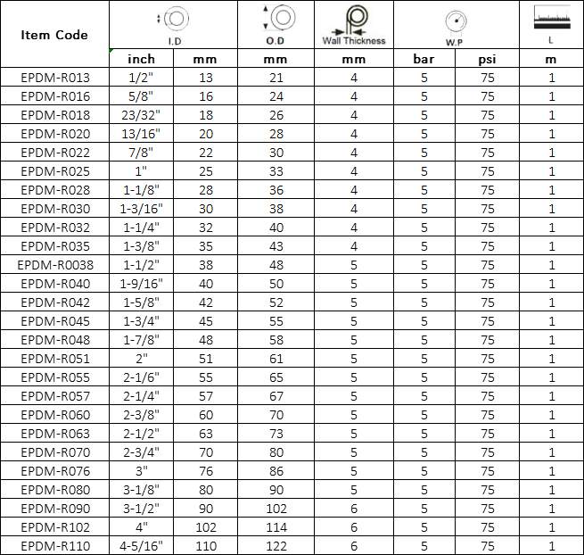 Cover: black EPDM – heat, abrasion and ozone resistant.